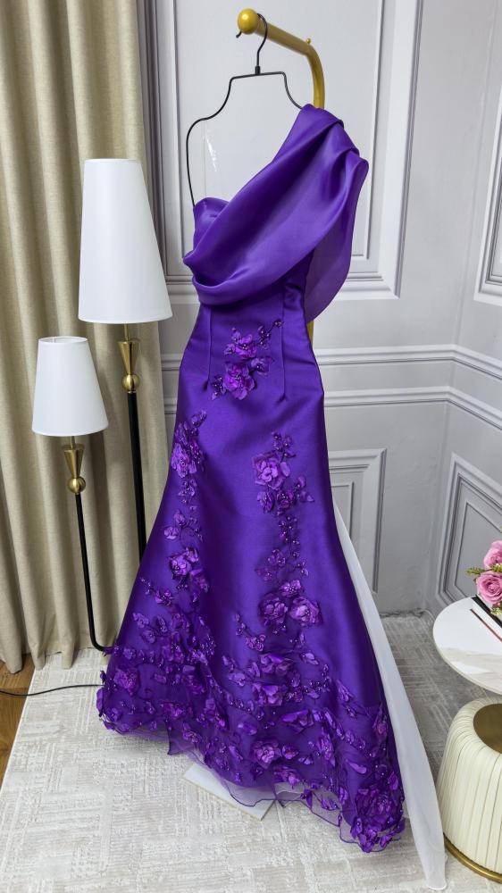فستان سهرة موف كلفة ورود مطرز يدوي هو قطعة فريدة من نوعها تضيف لمسة من الأناقة والجمال إلى إطلالتك في المناسبات الخاصة والسهرات. صُنع هذا الفستان من اللون الموف الأنيق وتمتزج فيه تفاصيل من عمل الورود المطرزة يدويًا، مما يجعله قطعة فنية تعكس ذوقًا رفيعًا.