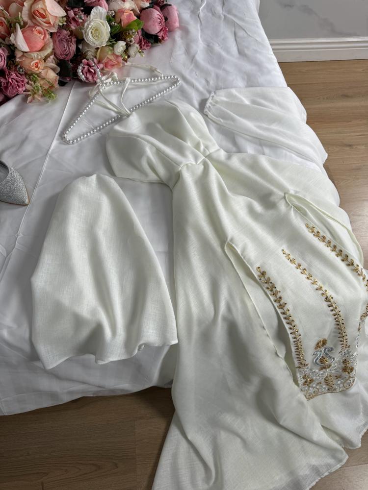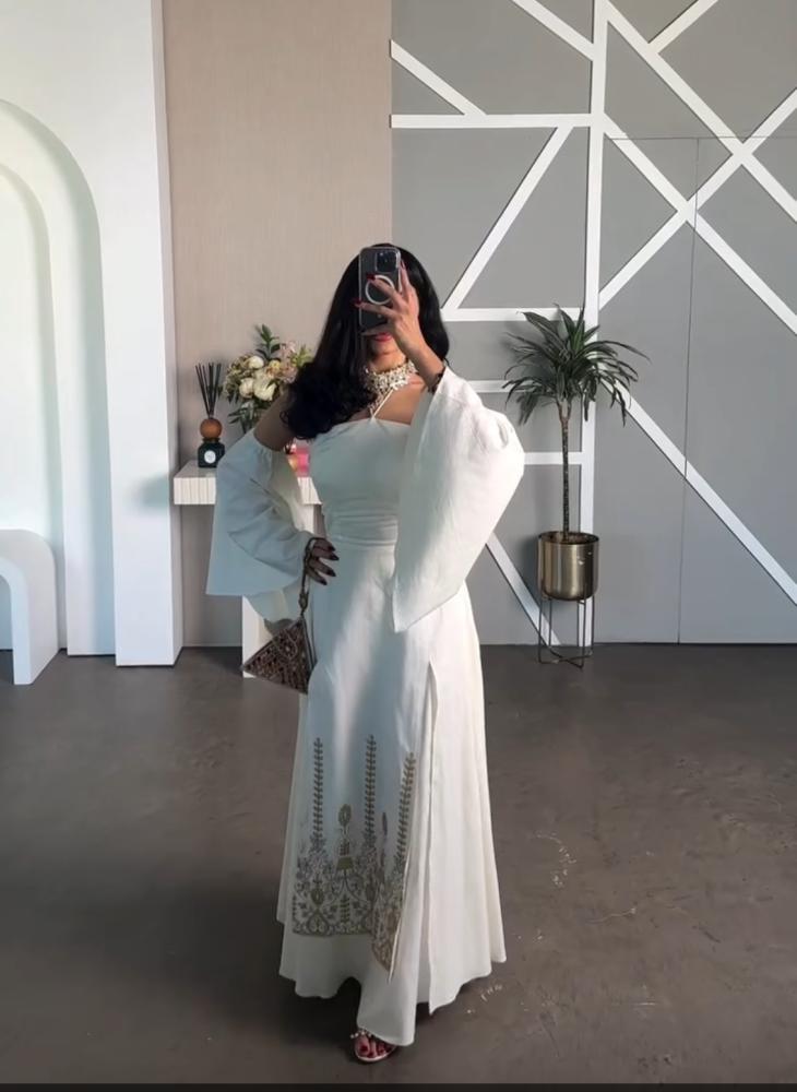تألقي بإطلالة ساحرة وأنيقة مع هذه الجلابية الفريدة، المصنوعة من أجود أنواع قماش الناين الهندي الفاخر. تصميم عصري يجمع بين الأصالة والعصرية، يضفي عليكِ سحرًا خاصًا في كل مناسبة.