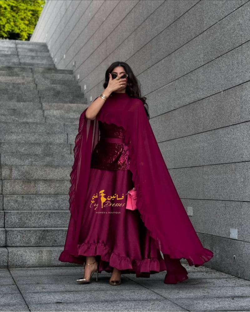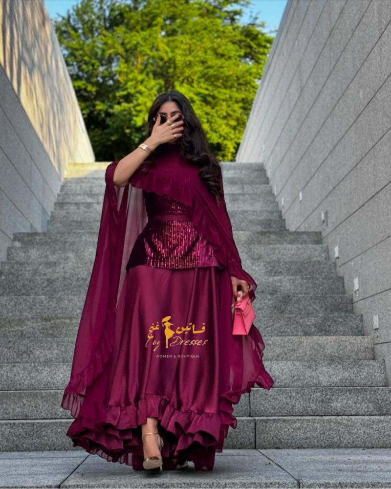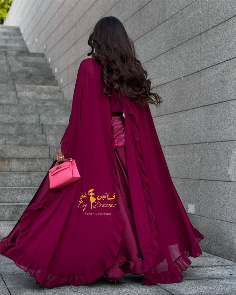 جلابيه بقماش الشيفون بصدر ترتر
