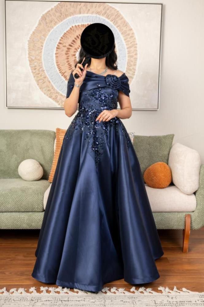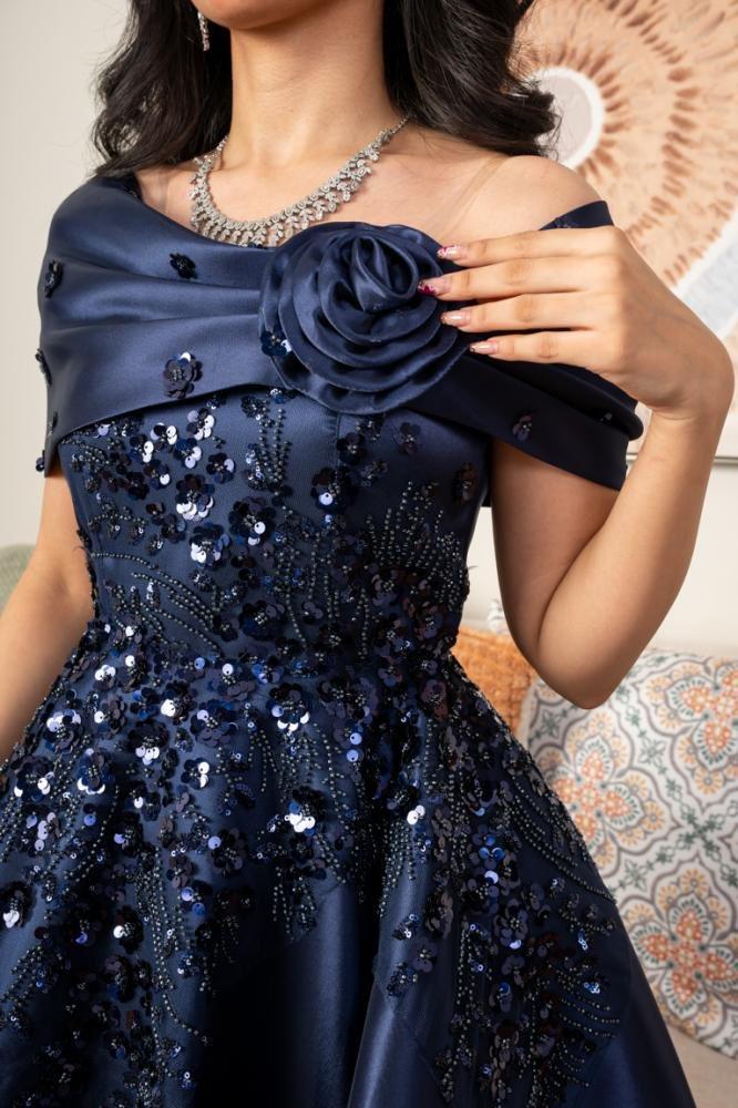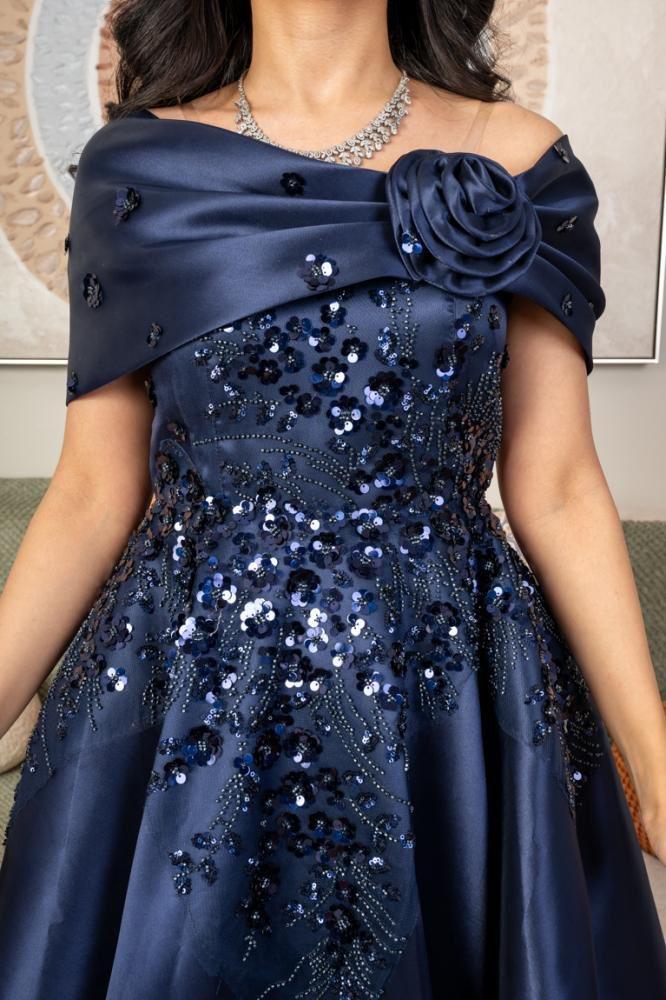 فستان سهره كحلي مطرز خامه ميكادو