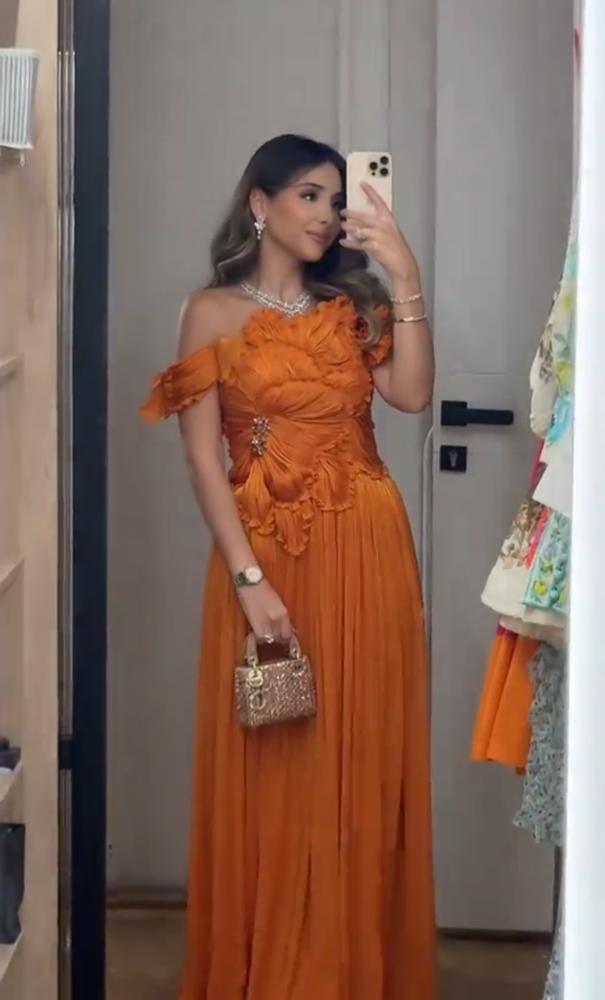 - القماش: شيفون أو جورجيت بطبقات خفيفة.
