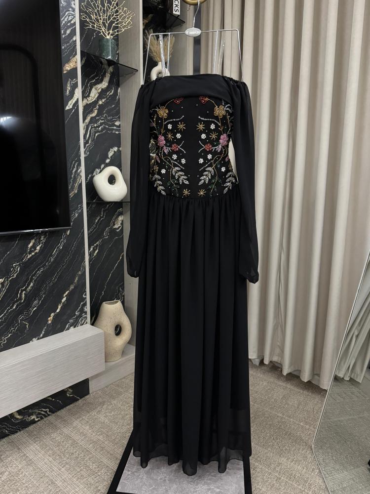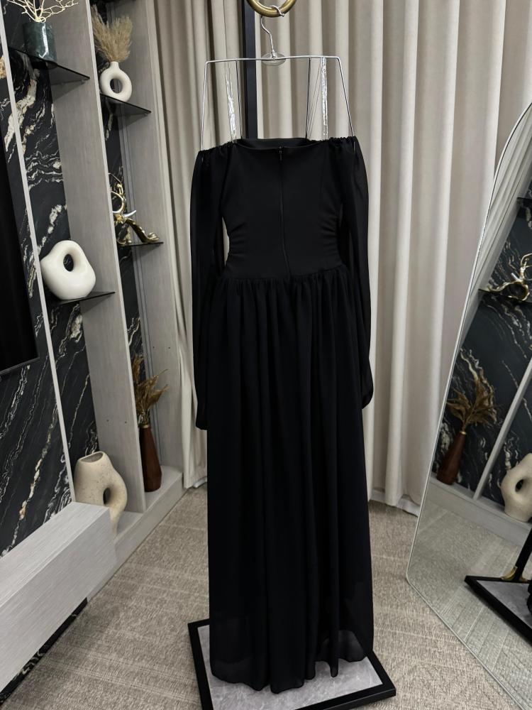فستان سهره اسود خامه شيفون