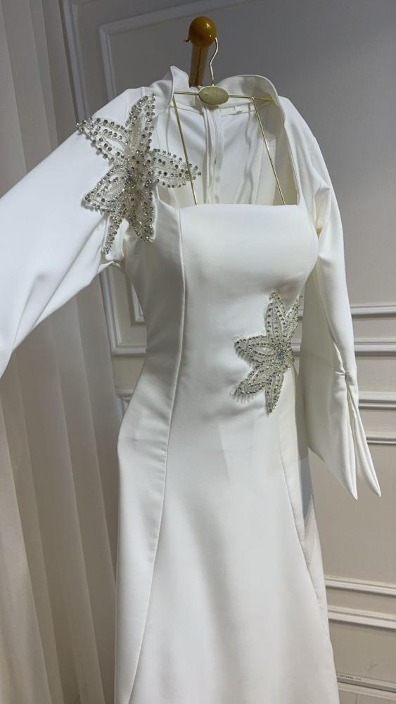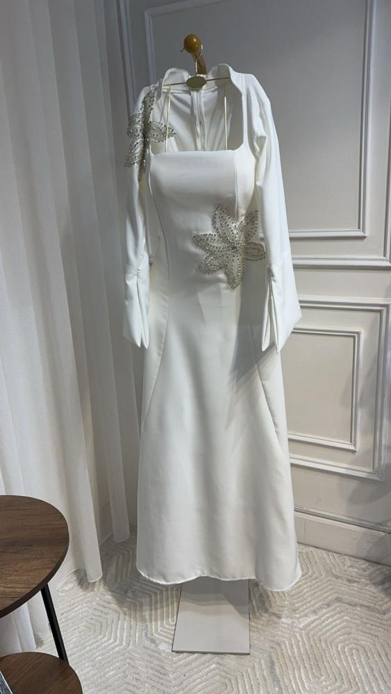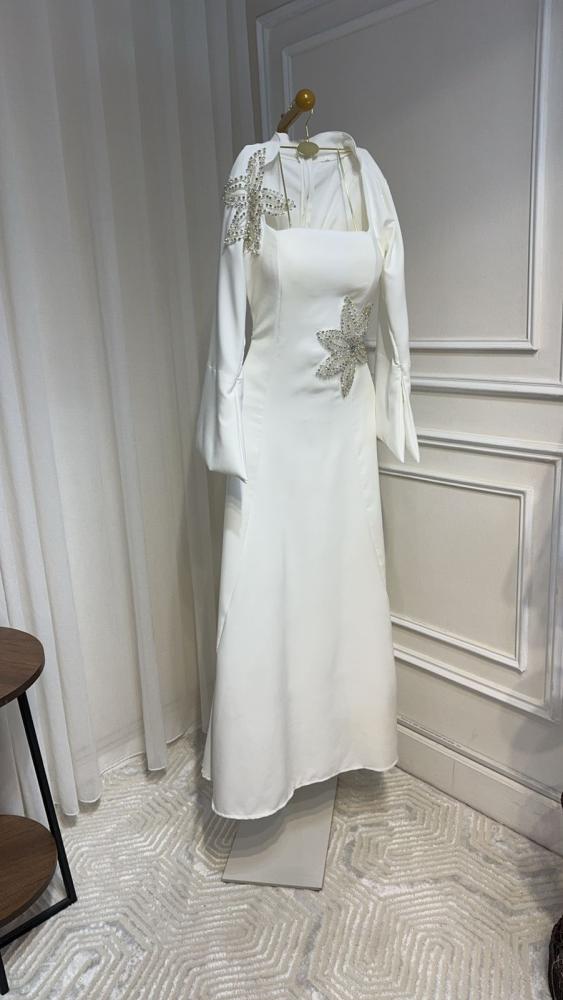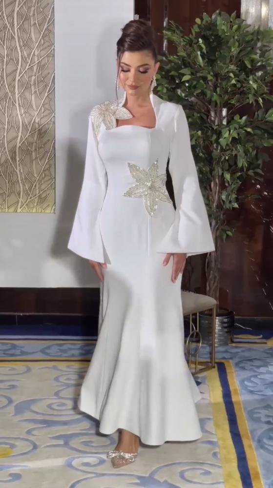 فساتين سهرة طويل ابيض خامه باربي تطريز يدوي