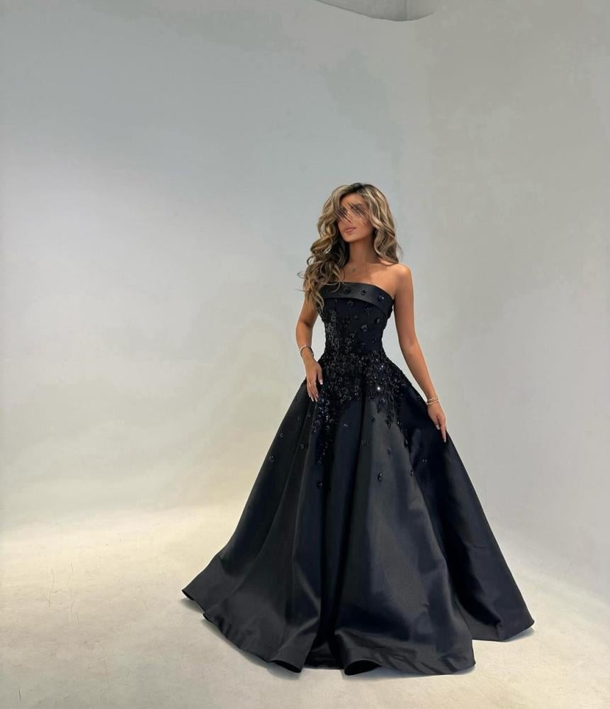فستان أسود مطرز خامه ميكادو