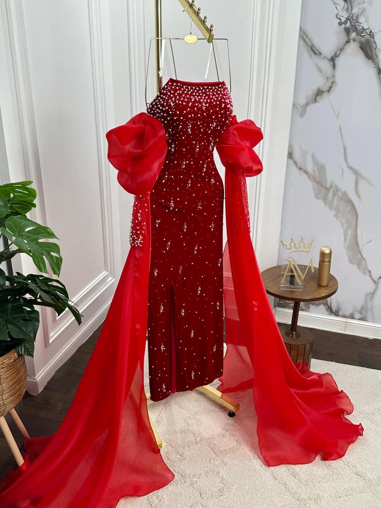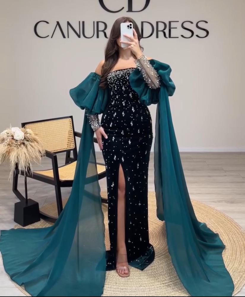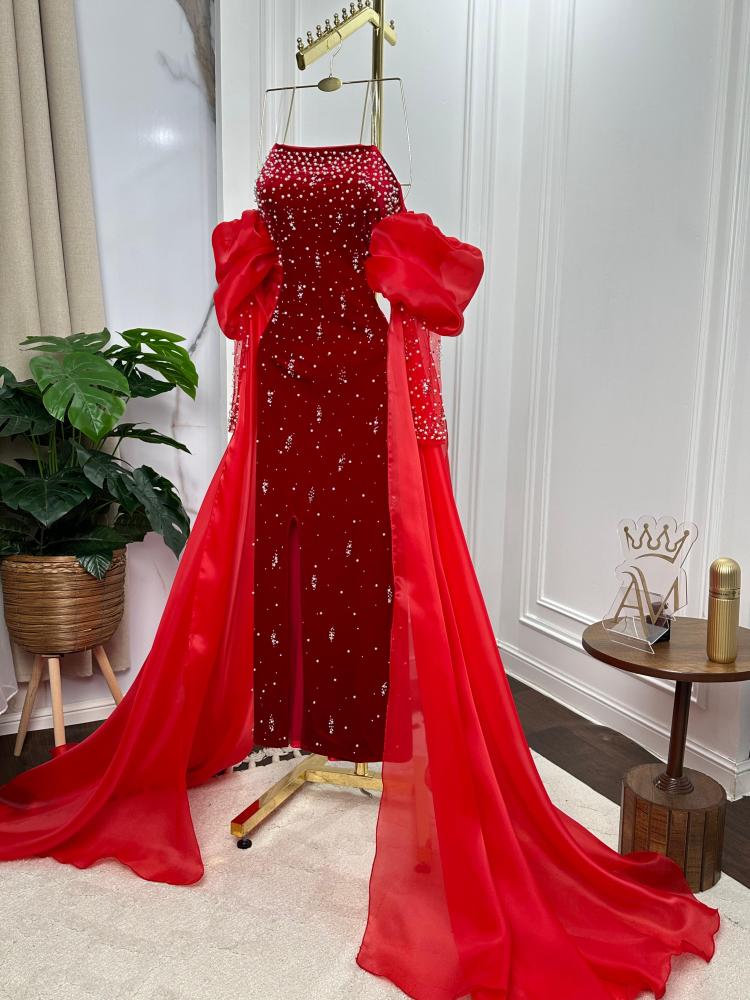 فستان سهره مخمل مطرز مع ذيل 2لون