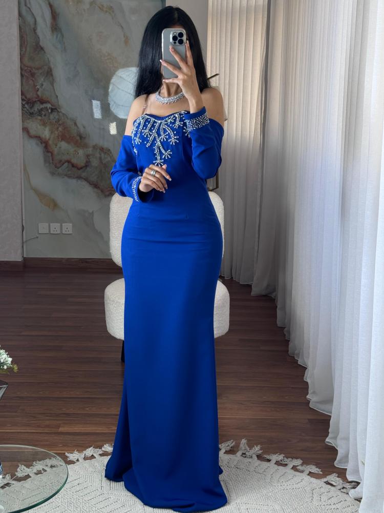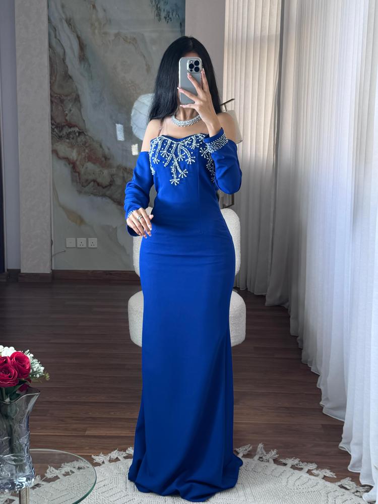 فستان سهرة ناعم مطرز بالفصوص السوارفسكي