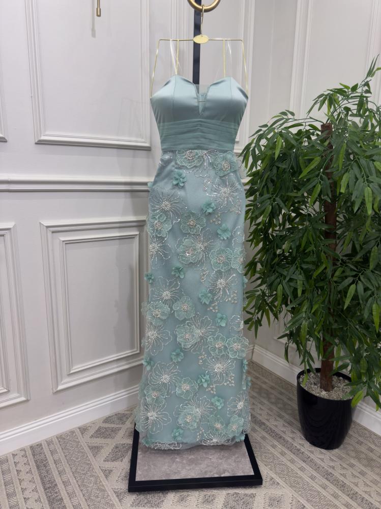 نوع التصميم/ فستان سهره مزين بورود مع لولو بشكل انيق